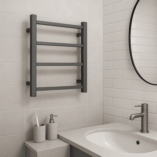 Add modern elegance and efficient warmth to your smaller bathroom or ensuite with this 4-bar electric heated towel rack in gunmetal grey. Made from high-quality stainless steel, it combines contemporary style with practical energy-saving performance.