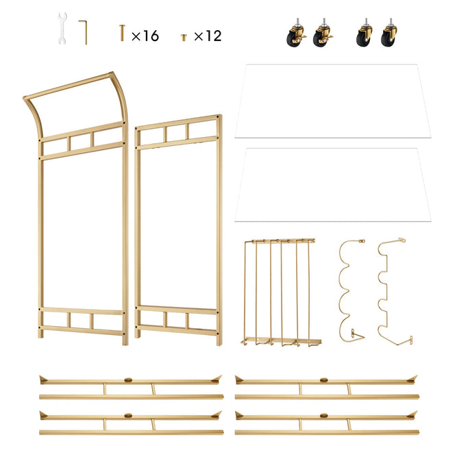 Wine bottle racks for 4 bottles of wine, and 3-row wine glass holders.