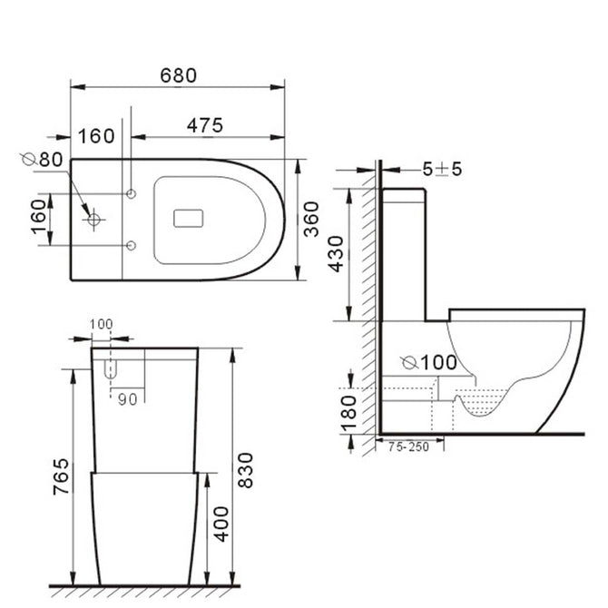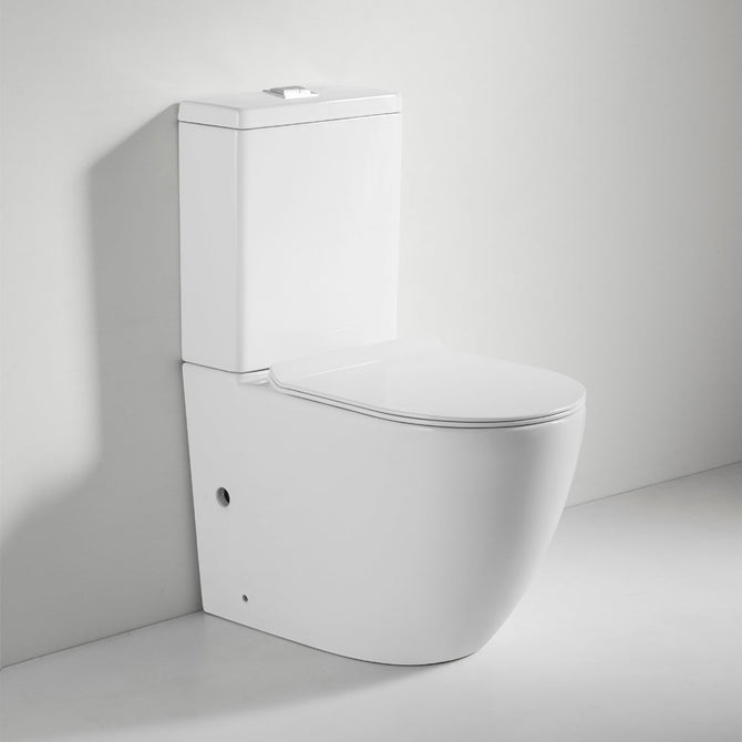 Premium grade white ceramic toilet suite with RIMLESS pan and heavy-duty soft close seat. No hidden and hard to reach places that is prompt to growth of bacteria and also bad odour. Wall face style with European high quality including variable set out connector and pan fixing bracket. Dual flush design 4.5/3L with a 4 star WELS rating that exceeds New Zealand standard requirements.
