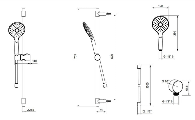 | Shape | Round Handheld Shower Spray w/ Sliding Rail Holder |