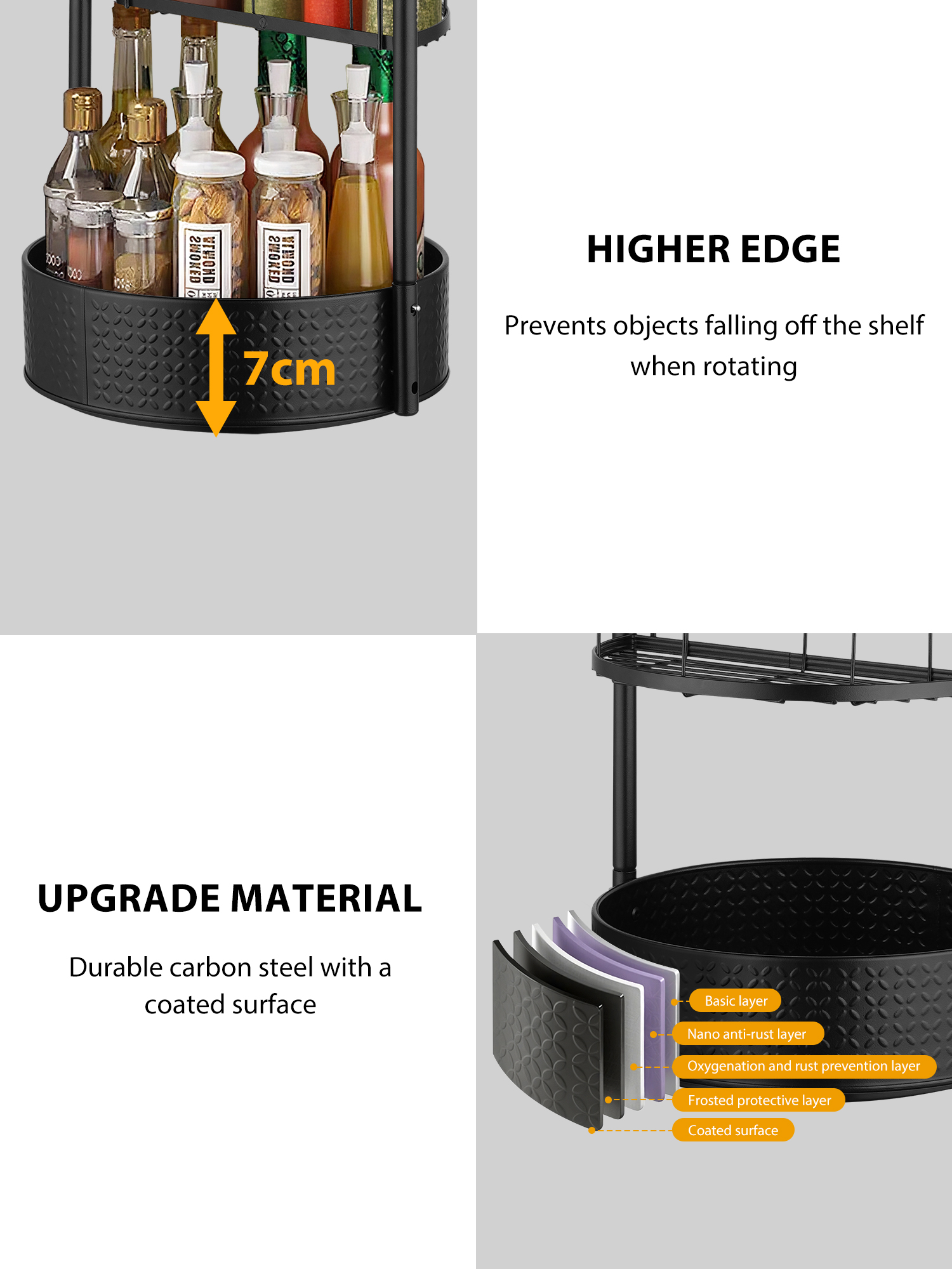 Reviews Over 2-Tier Adjustable Lazy Susan Spice Rack, 360° Rotating Countertop Organizer with Removable Towel Holder & Semi-Circle Basket
