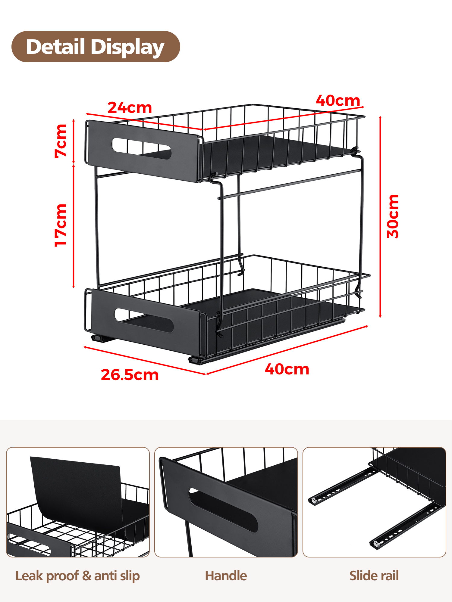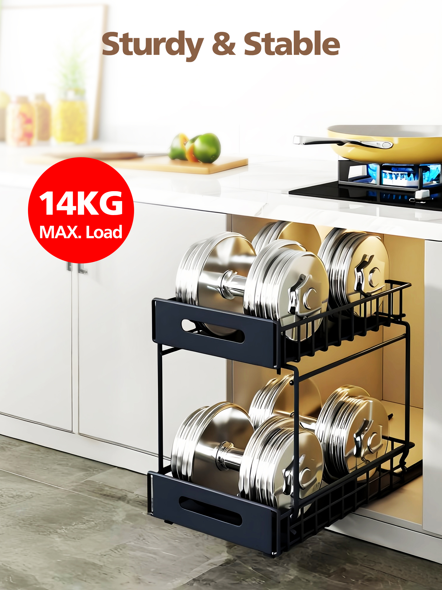 Write a review For 2-Tier Under-Sink Pull-Out Organizer, No-Drill Installation Sliding Bathroom/Kitchen Cabinet Storage Basket Black