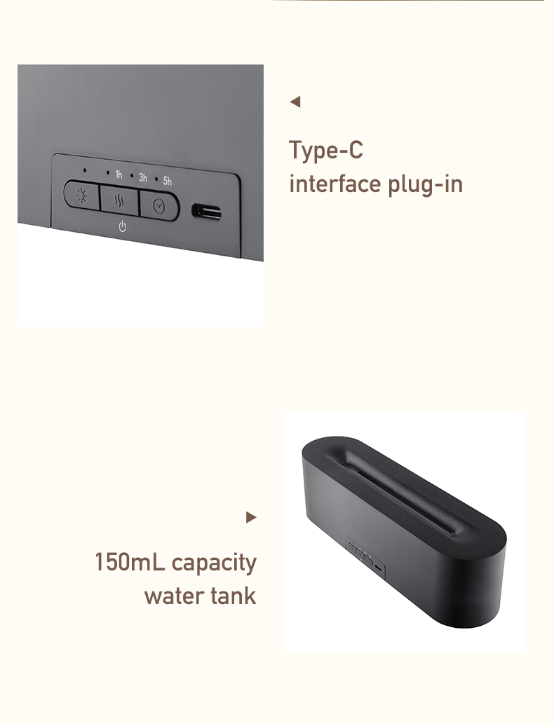1. The maximum water volume of the water tank is 150ml, and the water injection volume shall not exceed the maximum water level line. Otherwise the atomization effect will be affected.