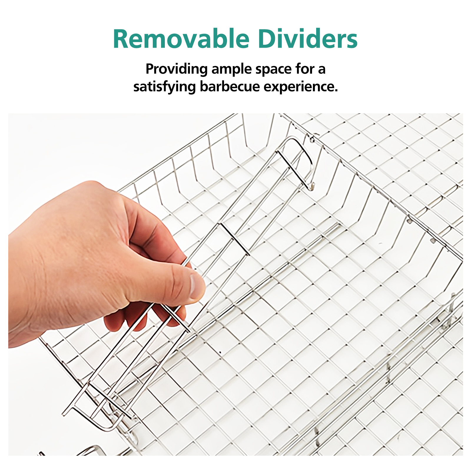 Removable Dividers – Adjust the space to grill different foods at the same time