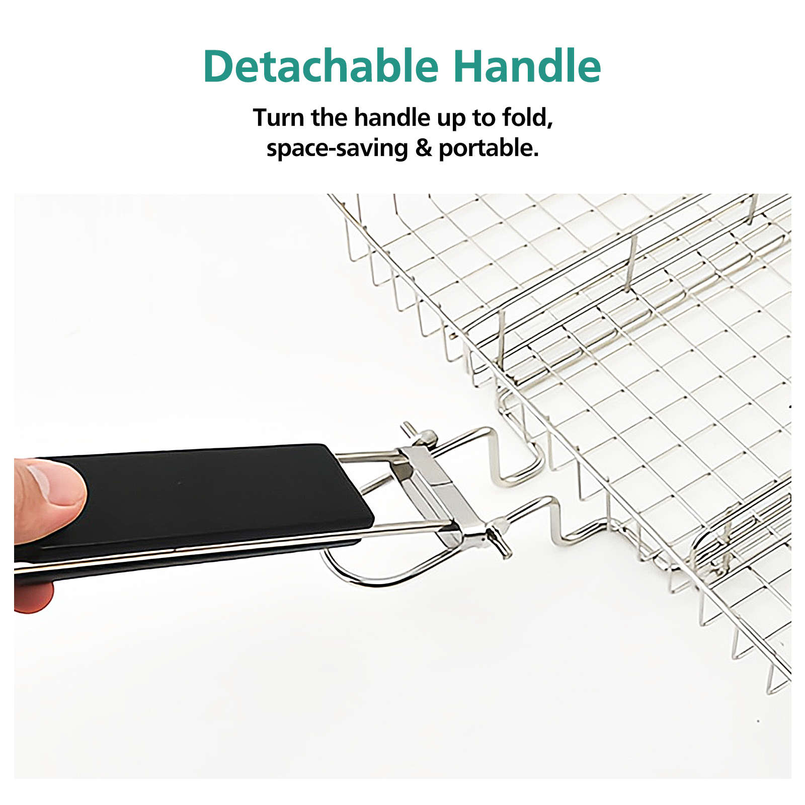 Multi Purpose Portable BBQ Grill Basket Removable Dividers & Foldable Handle